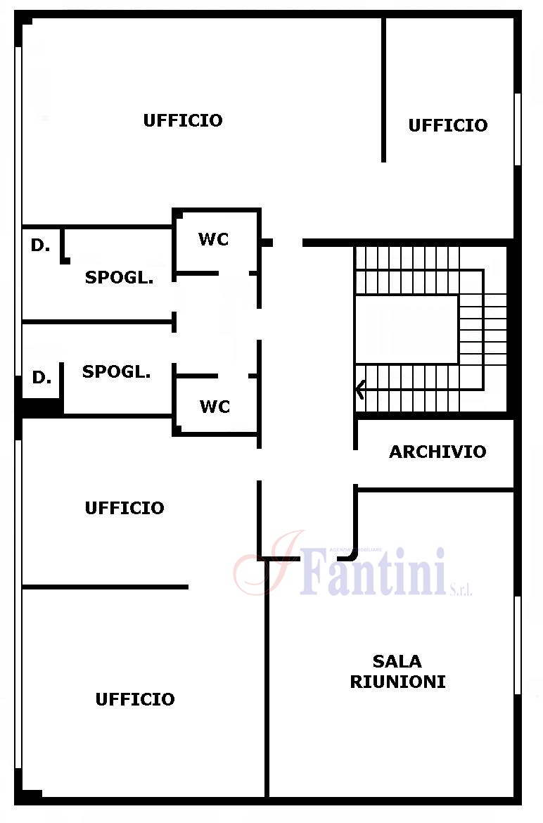 quattro uffici, sala riunioni, archivio e servizi.