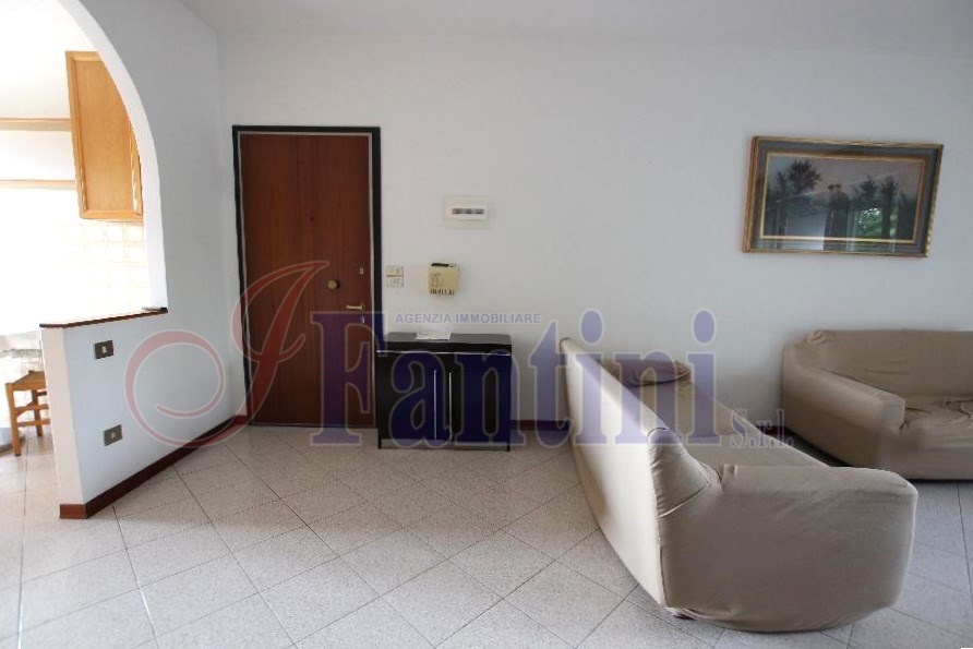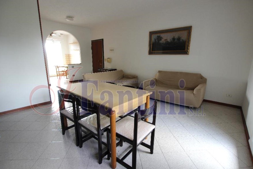 Affittasi al terzo piano con ascensore appartamento completamente arredato composto da: ingresso su soggiorno con balcone, cucina abitabile con balcone, disimpegno notte, due camere matrimoniali, due bagni di cui uno cieco, ripostiglio e cantina al piano interrato.
